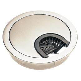 Suportul doza metalica pentru trecere cabluri are finisajul otel periat de inalta calitate. Estetica suportului il recomanda pentru diverse stiluri de mobilier, modern, clasic si in special pentru cel de birou.