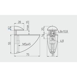 Se potriveste cu politele din sticla sau lemn cu pana la 25 mm grosime, pana la 250 mm adancime, cu o capacitate de greutate de 10 kg.