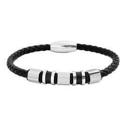 Bratara marca Akzent este realizata dintr-o curea din piele naturala impletita si diverse elemente din otel inoxidabil si cauciuc. Închiderea este o închidere magnetică practică, care ușurează să puneți și să scoateți brățara.