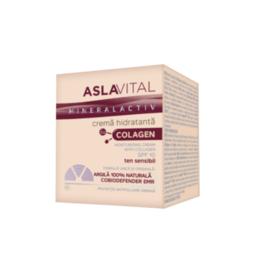 Crema Hidratanta cu Colagen - Aslavital MineralactivSPF 10, 50ml: crema de fata potrivita pentru ingrijirea pe timpul zilei a tenului datorita factorului de protectie solara din compozitie. Este recomandata pentru hidratarea si protectia tenurilor sensibile sau care se confrunta cu reactii la efectele negative ale factorilor de mediu (radiatii UV, poluare urbana, poluare electronica), reactii alergice, roseata, iritatii, vase de sange proeminente, deshidratare, ridare prematura.