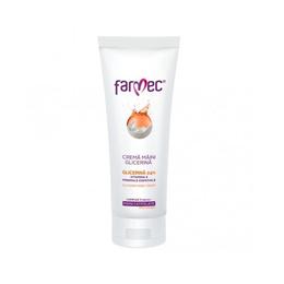 Crema de maini cu glicerina 24% Farmec, 40ml: crema pentru maini cu glicerina asigura ingrijire intensiva pentru pielea deshidratata si aspra, predispusa la uscare excesiva, chiar crapaturi. Datorita concentratiei mari de glicerina, pielea devine neteda si catifelata, stratul protector format la suprafata pielii actionand ca un scut impotriva factorilor agresanti