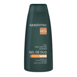 Gel de dus Wild 3in1 - Gerovital Men Shower Gel Face, Body and Hair, 400 ml: gel de dus 3in1 ce poate fi folosit pentru curatarea fetei, corpului si parului. Contine ingrediente importante precum glicerina, mentol si provitamina B5.
