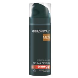 Spuma de Dus Energy - Gerovital Men, 200 ml: spuma de dus Energy Gerovital Men ce are o textura densa, cu parfum persistent, puternic masculin. Contine extract de ghimbir cu efect antioxidant si glicerina cu rol hidratant si emolient. Produsul este formulat la un pH echilibrat, care respecta pH-ul natural al pielii. Prin utilizarea zilnica in timpul dusului, ofera pielii o senzatie de confort si un aspect neted si catifelat.