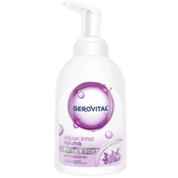 Sapun Lichid Spuma - Gerovital Pure&Soft, 300 ml: sapun destinat ingrijirii zilnice, asigurand o buna igiena a pielii mainilor. Nota de parfumare, confera senzatie de prospetime si confort. Asigura protectie impotriva bacteriilor pentru intreaga familie.