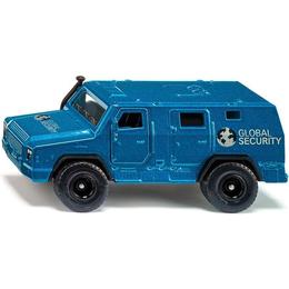 Fie ca este vorba despre bancnote, bijuterii, opere de arta importante sau documente – incarcatura exclusiva este protejata 100% in cabina din otel blindat. Transportorul de bani in miniatura de la siku este si el realizat din metal. Exteriorul este vopsit in albastru metalic iar suprafetele laterale sunt inscriptionate cu vopsea de calitate - sigla „Global Security”. Usile fata si cea din spate pot fi deschise. Vehiculul poate fi decorat suplimentar si cu autocolantele incluse, de exemplu cu informatiile „Transport numerar și valori” și „Monitorizat prin GPS” în diferite limbi: de exemplu Germana, Engleza, Italiana.