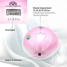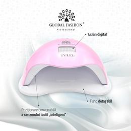Lampa de unghii LED/UV, Global Fashion L-1100 este o lampa de calitate, potrivita pentru uscarea rapida si uniforma a oricare tip de oja semipermanenta sau gel UV. Lampa este dotata cu display digital si dispune de 5 tipuri de programe, cu diversi timpi de uscare: 10s, 30s, 60s, 90s si 120s.