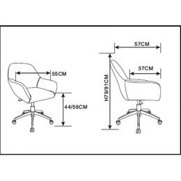 Dimensiunile totale ale scaunului sunt 55 cm lățime, 57 cm adâncime și 91 cm înălțime. Înălțimea scaunului poate fi ajustată între 97 și 91 cm.