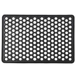 Preș de intrare din cauciuc rezistent, lavabil și cu un design modern. Durata de utilizare este lungă, chiar și în condiții exigente de mediu extern. Particulele de murdărie și pietrișul cad prin inelele de cauciuc, fiind foarte avantajos în condiții umede, cu zăpadă și gheață.