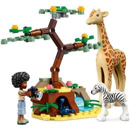 Lego Friends. Salvarea animalelor salbatice cu Mia: Pregateste-te pentru aventuri in safari. Mia a castigat un loc la un centru de salvare a animalelor salbatice, unde va ingriji animalele din safari. Un scorpion a intepat o zebra. Sari in SUV si gaseste animalul ranit. Inapoi la centru, mangaie zebra in timp ce dr. Makena ii face o tomografie. O girafa a venit sa salute. Urca la balcon si da-i sa manance o frunza.