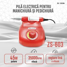 Pila electrica ZS-603, 35000rpm, 45W este o freza de calitate, indeplinita la cele mai inalte standarte. Aparatul atribuie multiple intrebuintari pentru realizarea manichiurei perfecte. Pentru pedichiura este recomandat de a fi utilizat mai rar si in proceduri mai simple. Produsul este potrivit pentru pilirea gelului UV si acryl etc.
