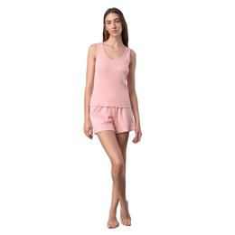 Croiul este clasic/lounge, cu bluza fara maneci si cu decolteu rotund. Pantalonul scurt are talie medie. Culoarea este placuta si relaxanta. Produsul este potrivit pentru orice tipologie de corp.