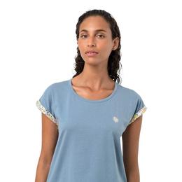 Pijama de dama Vamp, realizata din 100% bumbac jersey specific pentru sezonul de primavera vara. Materialul este usor, compact, igienic si foarte placut la purtare. Croiul este clasic cu bluza de o lungime de 68 cm.
