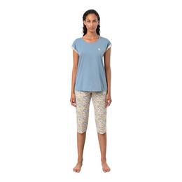 Pijama de dama Vamp, realizata din 100% bumbac jersey specific pentru sezonul de primavara-vara. Materialul este usor, compact, igienic si foarte placut la purtare. Croiul este clasic cu bluza de o lungime de 68 cm.