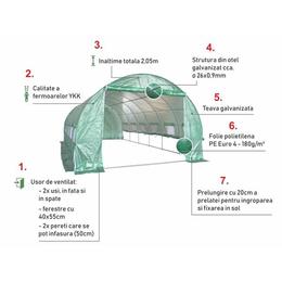 Solar 3x8m cu cadru galvanizat la bază, Folie din polietilenă armată 180g/m², țevi galvanizate 26x0,9mm.