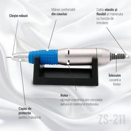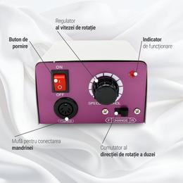 Pila electrica are un design compact si practic, astfel nu va ocupa mult loc pe masa de manichiura. Are un aspect original, aceasta se va incorpora ideal pe masa de manichiura.