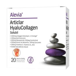 Articular HyaluCollagen Solubil Alevia, 20 plicuri: contine o combinatie premium de substante nutritive, pentru stimularea sintezei colagenului si a proteglicanilor si extracte standardizate din plante cu efect antiinflamator. Imbunatateste elasticitatea si flexibilitatea ligamentelor, cartilajelor si articulatiilor si diminueaza inflamatiile.