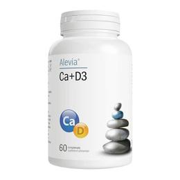 Calciu si Vitamina D3 Alevia, 60 comprimate: contribuie la mentinerea sanatatii sistemului osos,functionarea normala a enzimelor digestive, mentinerea sanatatii dintilor, functionarea normala a sistemului muscular. Comprimatele cu calciu si vitamina D3 sunt recomandate in: osteoartrita, osteoporoza, osteomalacie, rahitism, artrita reumatoida, discopatii, fracturi osoase, reglarea contractiilor musculare, nevralgii, menopauza, sindrom premenstrual, sindrom de ovar polichistic, preeclampsie, insomnie, depresie, stres, stari de anxietate si nervozitate, migrene, oboseala.