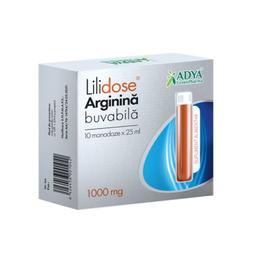 Lilidose Arginina 1000 mg Buvabila Adya Green Pharma, 10 monodoze: este un produs din categoria suplimentelor alimentare care contine aminoacidul arginina sub forma usor asimilabila de aspartat. L-Arginina este un aminoacid semiesential care intra in structura proteinelor, fiind necesar pentru sinteza de creatina cu rol in sinteza hormonului hipofizar, participa la metabolizarea amoniacului (care este toxic pentru organism) si se regaseste si in lichidul seminal al barbatilor (in proportie de peste 80%). Datorita acestor proprietati ale argininei, beneficiile acestui aminoacid asupra organismului sunt multiple, de la efectul detoxifiant asupra ficatului, pana la implicarea acestuia in procesele de crestere a copiilor, de scadere a tensiunii arteriale sau vindecare a ranilor, imbunatatirea functiei sexuale. Arginina este aminoacidul implicat in procesul de sinteza al proteinelor in organism. La randul lor, proteinele contribuie la cresterea masei musculare, arginina devenind astfel un nutrient-cheie pentru sportivi sau perioadele de efort fizic sustinut. De asemenea, in organism arginina este transformata in oxid nitric, produs cu rol vasodilatator ce contribuie la imbunatatirea circulatiei prin dilatarea vaselor de sange.