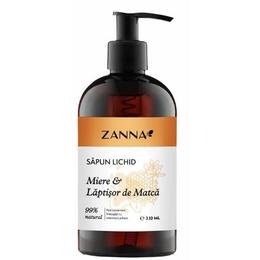 Sapun Lichid cu Miere & Laptisor de Matca Zanna, 330 ml: sapun lichid ce are la baza o formula cu miere si laptisor de matca ce curata delicat pielea. Este foarte nutritiv datorita continutului ridicat de proteine importante pentru regenerarea si reproducerea celulara. Asigura protectie impotriva imbatranirii premature si reglaza fotosensibilitatea pielii dupa expunerea la radiatii ultraviolete. Hidrateaza si protejeaza impotriva factorilor externi daunatori. De asemenea, are in compozitie 99% ingrediente de origine naturala si nu contine conservanti.