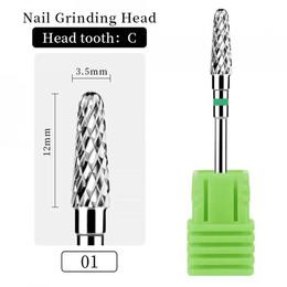 Capat freza din carbid, varf conic, argintiu, duritate medie - verde