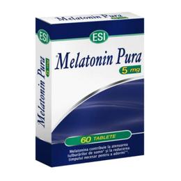 Melatonina Pura 5 mg, Esitalia, 60 tablete: este indicat pentru persoanele cu insomnii, este un bun ajutor in situatii de stres care fac dificil un somn bun, poate fi folosita pentru a reglementa ritmul circadian si pentru a evita disconfortul datorat fusului orar. Melatonina este un inductor natural al somnului, care contribuie la imbunatatirea calitatii somnului.