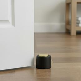 Acest opritor rotund se potriveste perfect in orice incapere datorita finisajului elegant din alama satin si negru mat.