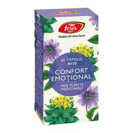 Confort Emotional N135, Fares, 60 capsule: ajuta la mentinerea unei stari de bine mentale, favorizeaza mentinerea calmului in conditii de stres, imbunatateste calitatea somnului, linisteste starile de agitatie nervoasa si iritabilitate.