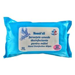 Monuk'all Servetele Umede Dezinfectante pentru Maini - FLM Group, 60 buc: servetele antibacteriene si dezinfectante pentru maini cu aroma de mar, ideale atat pentru copii cat si pentru adulti, produs testat dermatologic. Asigura o protectie eficienta a pielii si sunt usor de transportat. Produs fara parabeni, fara alergeni.