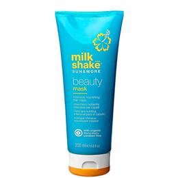 Masca Hidratanta pentru Par - Milk Shake Sun & More Beauty Mask, 200 ml: masca ce hraneste intens parul si poate fi folosita dupa spalarea cu sampon, pentru a calma efectele distructive ale razele solare, ale vantului, sarii sau clorului. Actioneaza in profunzime, datorita imbinarii dintre ingredintele de balsam cu extracte naturale, vitamina E si filtru UV si lasa parul stralucitor, matasos si usor de pieptanat. Fara parabeni.