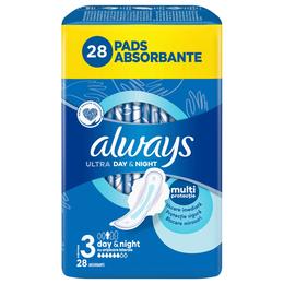Absorbante Igienice - Always Ultra Day & Night, Marime 3, 28 buc: absorbante cu strat superior Soft Like Cotton si zone de confort unice pentru a asigura un confort sporit pentru pielea dumneavoastra delicata pe timpul noptii. Ideale pentru scurgerile din timpul noptii sau pentru zilele cu scurgeri abundente ale ciclului menstrual. Cu aripioare ce confera o protectie laterala sporita si ajuta la fixarea absorbantului. Interior absorbant Super Ultra cu gel care impiedica scurgerea lichidului.