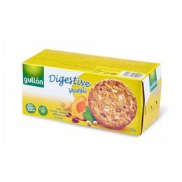 Biscuiti Digestivi cu Muesli, Ovaz, Stafide si Caise - Gullon, 230 g: biscuiti ideali pentru o gustarea delicioasa si sanatoasa.