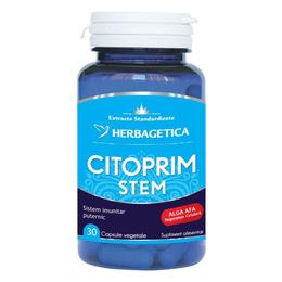 Citoprim+ Stem Herbagetica, 30 capsule: stimuleaza apararea imunologica naturala, stimuleaza productia de celule STEM, efect antioxidant intens, elimina metalele grele din organism. Citoprim+ Stem reuneste o formula complexa si unica cu 10 extracte naturale dedicate sustinerii si fortificarii sistemului imunitar si a metabolismului energetic al organismului.