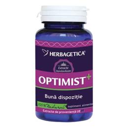 Optimist+ Herbagetica, 30 capsule: supliment alimentar ce contribuie la functionarea normala a sistemului nervos prin armonizarea starilor psiho-emotionale, obtinerea unui somn de calitate, gestionarea stresului fiziologic si psihic, protejarea celulelor impotriva stresului oxidativ, mentinerea capacitatii de concentrare si memorare, relaxare si buna dispozitie.