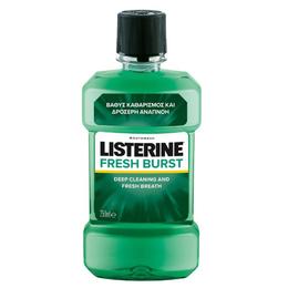 Apa de Gura - Listerine Fresh Burst, 250 ml: apa de gura fresh burst previne si reduce placa dentara, o cauza principala a afectiunilor gingivale, indeparteaza bacteriile dintre dinti si improspateaza respiratia. Folosita de doua ori pe zi, apa de gura ofera protectie impotriva placii dentare timp de 24 de ore si increderea unei respiratii proaspete. Apa de gura fresh burst poate fi utilizat in baza recomandarii medicului in afectiuni medicale cum ar fi: gingivita si este indicata pentru: halena (halitoza, respiratia urat mirositoare), preventia si tratamentul cariilor.
