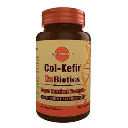 Col-Kefir 3xBiotic Kombucell, Medica, 40 capsule: poate contribui la formarea de biopeptide active cu dimensiuni extrem de mici avand multiple functii ce pot ajuta la: buna functionare a tractului gastro-intestinal, intarirea sistemului imunitar, buna functionare a aparatului cardiovascular, recuperarea musculara dupa efortul fizic intens si favorizarea modelarii masei musculare cand este utilizat in combinatie cu exercitii fizice. Aportul de bacterii si drojdii poate ajuta la mentinerea unei flore microbiene intestinale normale, cu multiple efecte benefice fizice si mentale, astfel putand mentine vitalitatea si echilibrul intregului organism.