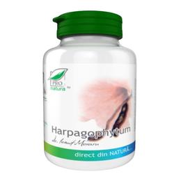 Harpagophytum Pro Natura, Medica, 60 capsule: antireumatic, antiinflamator, imbunatateste mobilitatea articulara. Este indicat artroze, spondiloze, artrite, entorse, contuzii, tendinite, bursite, fracturi, nevralgii, mialgii. Adjuvant in tratamentul poliartritei reumatoide; guta; favorizeaza eliminarea acidului uric.