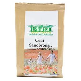 Ceai de Plante - Plafar Sanobronsic, 50 g: sustine respiratia, sanatatea sistemului respirator, util in caz de tuse, cu efect calmant asupra cailor respiratorii, asupra gatului, faringelui si corzilor vocale. Este util in caz de iritatie a gatului si faringelui, sustine expectoratia, sistemul imunitar si mentine calitatea somnului.