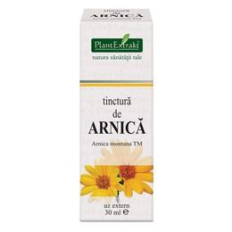 Tinctura de Arnica, PlantExtrakt, 30 ml: antireumatic, antiinflamator, analgezic de uz extern. Ajuta la refacerea pielii in caz de traumatisme (fara rani deschise): contuzii, hematoame, entorse, luxatii. Ajuta la ameliorarea simptomelor cauzate de intepaturi de insecte.