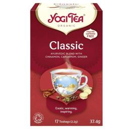 Ceai Bio Clasic - Pronat Yogi Tea Organic Classic, 17 plicuri: ceaiul Yogi Tea, un amestec ayurvedic bio cu cardamom, scortisoara, cuisoare si piper negru: aceasta reteta clasica are o traditie de mii de ani si este profund legata de obiceiurile ancestrale practicate in estul indepartat. Aromele dulci si ispititoare ale ceaiului Yogi Tea Classic va vor incalzi atat spiritul cat si inima. Inchideti ochii si inhalati aroma bogata de scortisoara si ghimbir.