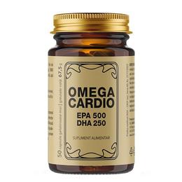 Omega Cardio - Remedia, 50 capsule gelatinoase moi: uleiul de peste imbunatateste sistemul circulator, sistemul nervos si osos. Este factor protector impotriva afectiunilor cardiace degenerative, echilibreaza nivelul colesterolului si al trigliceridelor in cazul dislipidemiilor moderate, este antiagregant plachetar, previne ateroscleroza si ajuta la buna functionare a vederii.