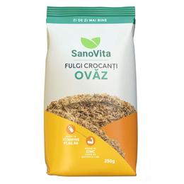 Fulgi Corcanti de Ovaz - Sano Vita, 250 g: ovazul este o sursa nutritiva excelenta de carbohidrati si fibre, contine vitaminele B1, B2, B6 si zinc, fiind totodata sursa de magneziu si fier. De asemenea, ovazul este cunoscut pentru multitudinea de compusi antioxidanti care ajuta la protejarea sistemului circulator de ateroscleroza si pentru betaglucan, care poate ajuta persoanele cu diabet zaharat de tip 2 la reglarea nivelului de glucoza din sange.