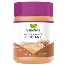 Unt de Arahide - Pasta de Arahide Crocanta - Sano Vita, 375 g: untul din arahide este crocant, datorita bucatilor de arahide pe care le are in compozitie. Poate fi consumat pe paine dimineata, folosit in prepararea cremelor, smoothie-urilor sau a budincilor. Contine grasmi si proteina vegetala, fiind recomandat copiilor aflati in crestere, sportivilor sau persoanelor care au un stil de viata activ.