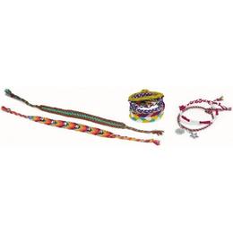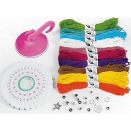 Set creatie: Bratarile prieteniei: Creeaza 10 bratari moderne utilizand fire de bumbac colorat, margele si pandantive! Foloseste roata speciala sau sistemul de prindere si lucreaza cate o bratara pentru fiecare prietena!