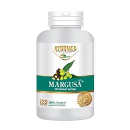 Supliment Alimentar Margusa 100% Natural - Star International Ayurmed, 120 tablete: supliment alimentar 100% natural, din plante medicinale. Margusa sustine functionarea fiziologica a sistemului gastro-intestinal asigurand o digestie si un tranzit intestinal normal care contribuie la procesul natural de detoxifiere prin eliminarea la nivelul colonului a produselor de digestie reziduale si a toxinelor. Ajuta sistemul hepatobiliar in procesul natural de detoxifiere prin sustinerea proceselor de metabolizare, stocare, transformare si eliminare a toxinelor din organism.