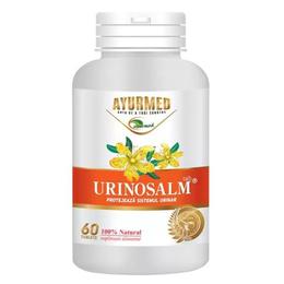 Supliment Alimentar Urinosalm 100% Natural - Star International Ayurmed, 60 tablete: supliment alimentar 100% natural, din plante medicinale ayurvedice pentru atenuarea manifestarilor neplacute asociate prezentei bacteriilor la nivelul sistemului urinar (urinari frecvente, insotite de senzatia de arsura si durere). Ajuta la mentinerea pH-ului normal al urinei, a compozitiei si a volumului de urina eliminat, sustinand tractul urinar in caz de infectii. Contribuie la refacerea sanatatii aparatului urinar. Amelioreaza starea de sanatate in caz de: cistita, uretrita, litiaza renala, infectii cu bacterii Gram pozitive si Gram negative (inclusiv E. Coli).