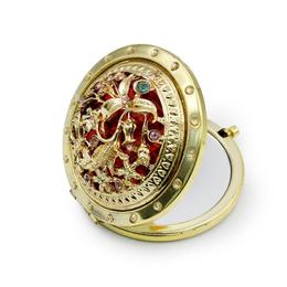 Oglinda cosmetica rotunda, petre floare, ideala pentru poseta.