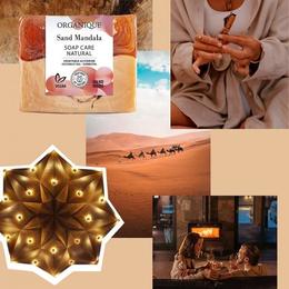 Sapun natural, vegan Sand Mandala, Organique Cosmetics, 100 g. Sapun natural, vegan si prelucrat manual, are la baza o compozitie de ulei vegetal si glicerina vegetala extrem de hranitoare, care, cand intra in contact cu apa calda si corpul tau, se transforma in spuma perfecta cu un aspect catifelat.