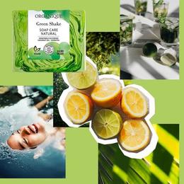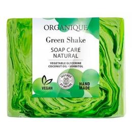 Sapun natural, vegan Green Shake, Organique Cosmetics, 100 g. Sapun natural, vegan si prelucrat manual, are la baza o compozitie de ulei vegetal si glicerina vegetala extrem de hranitoare, care, cand intra in contact cu apa calda si corpul tau, se transforma in spuma perfecta cu un aspect catifelat.