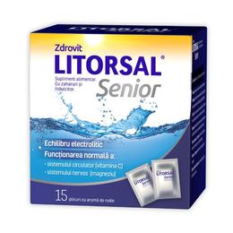 Litorsal Senior cu Aroma de Rodie - Zdrovit, 15 plicuri: supliment alimentar cu aroma de rodie pentru hidratarea si echilibrarea balantei electrolitice a organismului la varstnici si mentine buna functionare a sistemului nervos si a sistemului circulator.