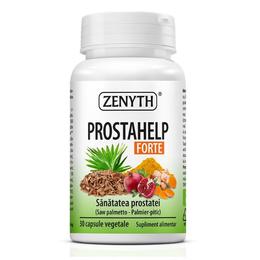 ProstaHelp Forte - Zenyth Pharmaceuticals, 30 capsule vegetale: supliment alimentar natural, cu o formula unica si complexa pentru santatea prostatei, functia urinara si functia reproductiva. Supliment pe baza de extracte standardizate din plante: Saw palmetto/palmier-pitic, pulpa si pielita de rodie, scoarta de prun-african, quercetina din mugur de salcam-japonez, curcumina din turmeric, plus bromelaina din ananas. Functioneaza ca un antiinflamator si antialgic natural si reduce manifestarile usoare si moderate ale cresterii in volum a prostatei: urinari frecvente, inclusiv nocturne, jet urinar slab. Totodata are rol de protectie impotriva infectiilor virale sau bacteriene ale tractului urinar. Potrivit si pentru vegetarieni si vegani.